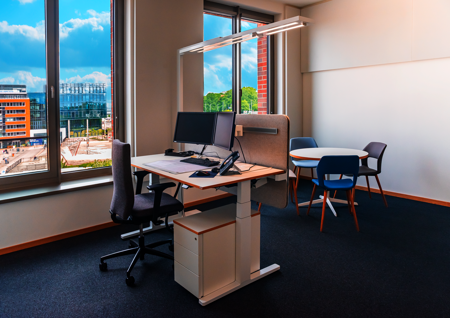 Idee: Ein zukunftsorientiertes Bürokonzept (DGNB Zertifizierung in Platin für nachhaltiges Bauen) mit genauen technischen und gestalterischen Vorstellungen mit spannenden Lösungen. Eingesetzte Möbelsysteme: WINEA FLOW, WINEA MAXX (Customizing), WINEA SONIC, CONTAINER (Customizing)