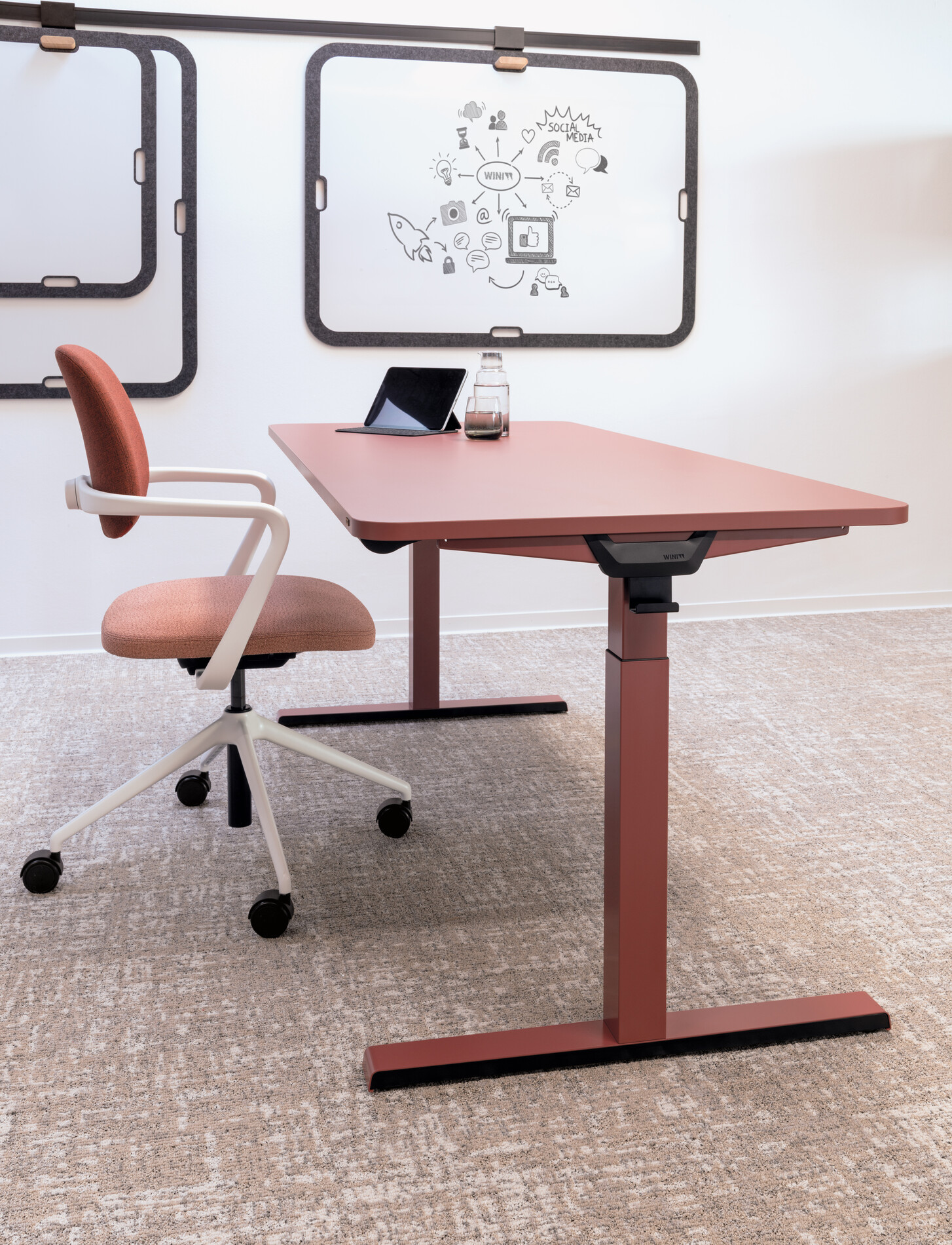 The WINEA FLOW table system from WINI Büromöbel stands for sustainable office furniture, long-lasting quality, and innovative design. Developed and manufactured in Germany, WINEA FLEX UP meets the highest standards in terms of the environment, safety, and workmanship. The table system is certified according to ISO 9001, ISO 14001, Blue Angel, and EMAS Level 3, underlining WINI's holistic approach to sustainability. For commercial customers, WINI offers a 10-year long-term warranty and a 10-year replacement guarantee, thus ensuring long-term investment and planning security. WINEA FLEX UP is optionally available with the SARA table top made from 100% recycled wood – for resource-saving, sustainable office design with impact and purpose.
