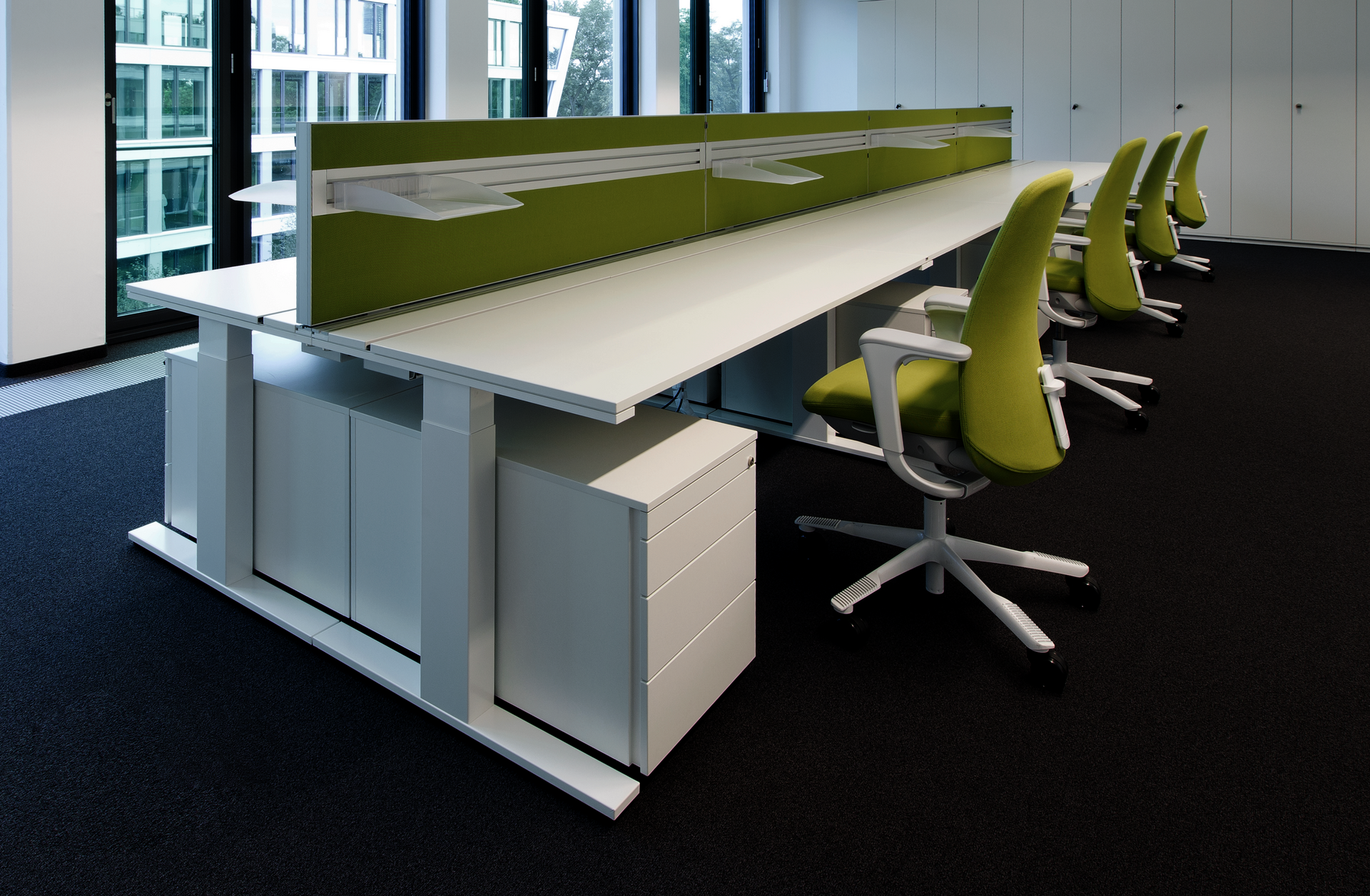 With the WINEA SINUS acoustic system, WINI offers a solution for all requirements for attractive and legally compliant room acoustics in the office: the modular frame elements, which can be interlinked with one another, can be used as table panels, movable walls, acoustic screens, wall absorbers or Ceiling panels. The wide range of WINEA SINUS element sizes, fabric colors and variants give you plenty of scope for the individual design of your office environments.
