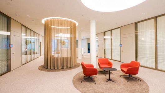Idea: A future-oriented office concept (DGNB certification in Platinum for sustainable building) with precise technical and design ideas with exciting solutions. Furniture systems used: WINEA FLOW, WINEA MAXX (customizing), WINEA SONIC, CONTAINER (customizing)